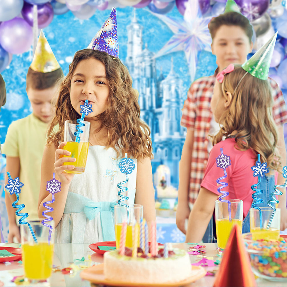 Winrayk 24Pcs Reusable Frozen Plastic Straws Drinking Straws Frozen Party F